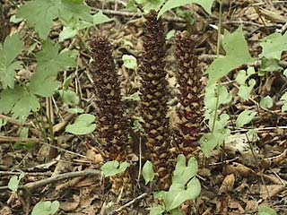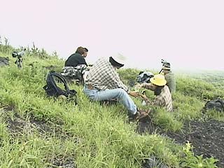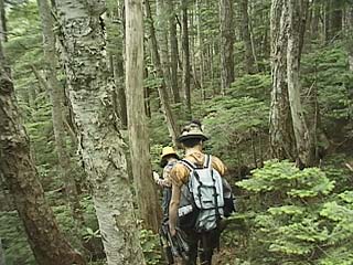 須走口5合目周辺の森と、草原を散策しました。オニクはこのあたりに多いミヤマハンノキの根に寄生しますが、乱獲のため小富士辺りではほとんど見られなくなってしまいました。専門家の話では、オニクの薬効成分は一般の薬草並で、たいしたものではないとのことでした。
