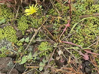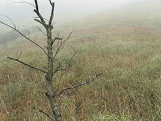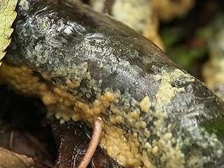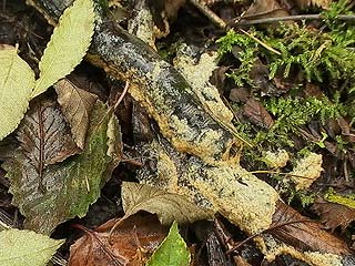 富士宮に行く途中、十里木高原に立ち寄りました。霧で草も濡れていたため少し入ってみただけでしたが、4年ぶりにアカスジカメムシを見つけました。帰りに昨日の観察会の粘菌を見に行ってみましたが、雨に打たれて表面のつぶつぶはほとんど溶けていました。