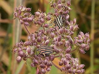 アカスジカメムシ・・片方は赤い部分の色が薄い